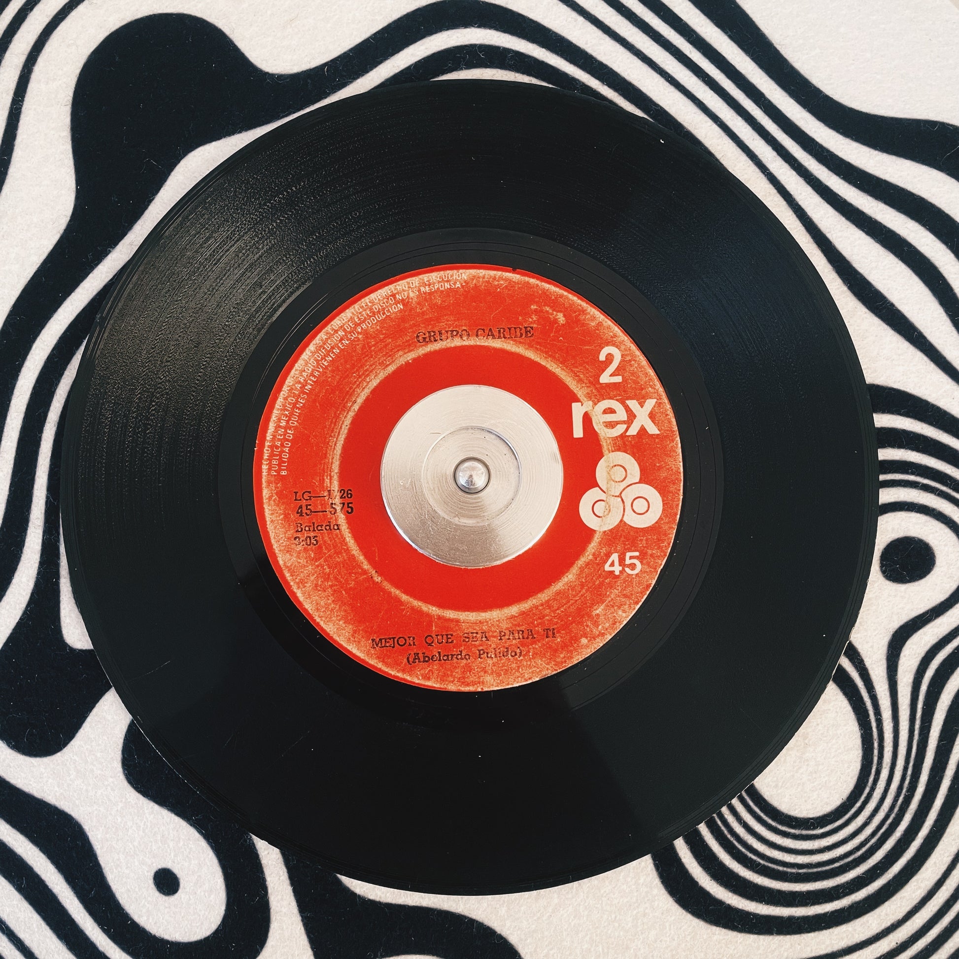 Etiqueta con desgaste, disco con ruido de fondo.